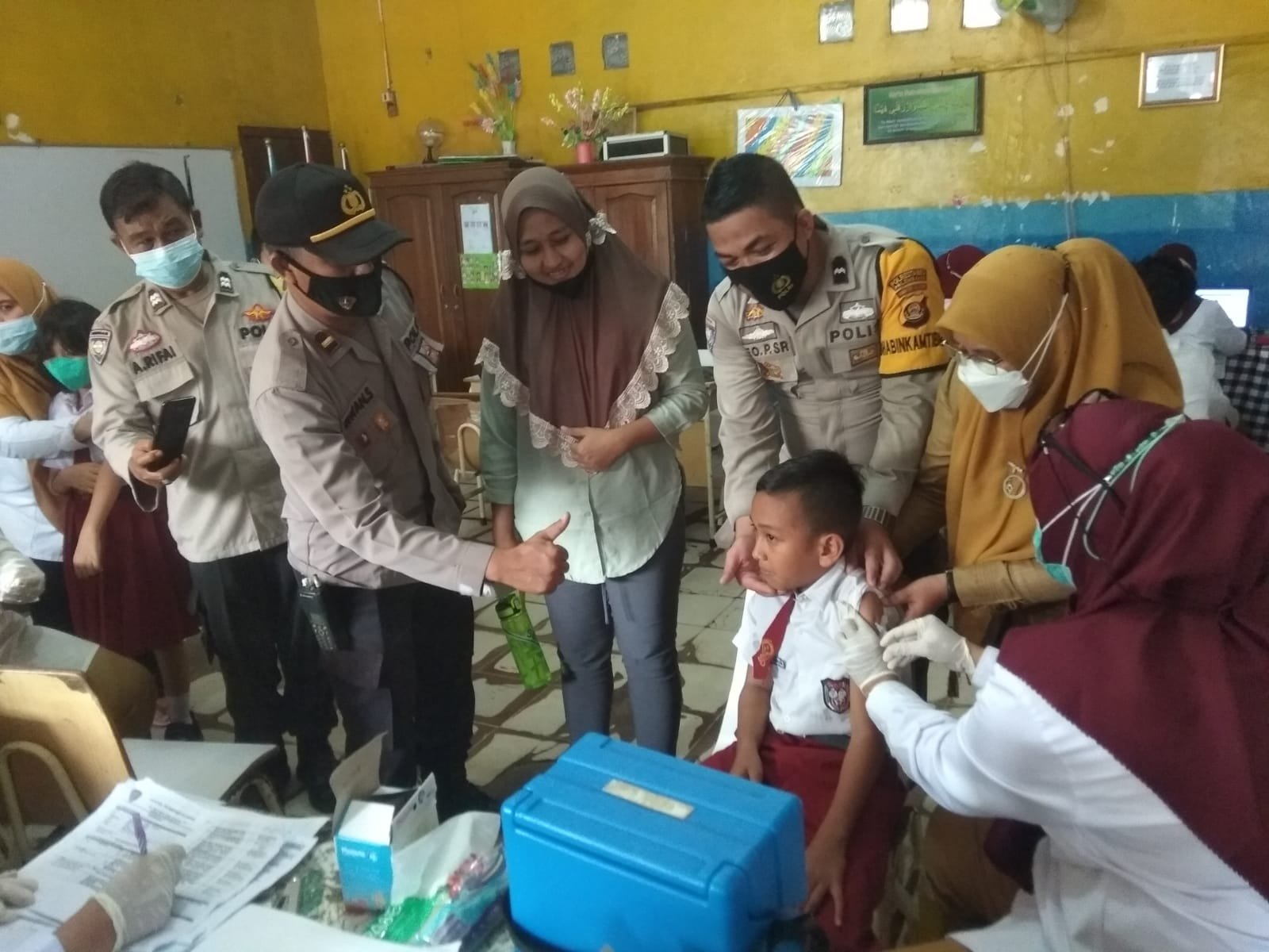 Semoga kegiatan hari ini berjalan lancar dan aman, hingga vaksinasi berikutnya tidak ada halangan. Tutup Kapsek SD N 74 Habibah.
