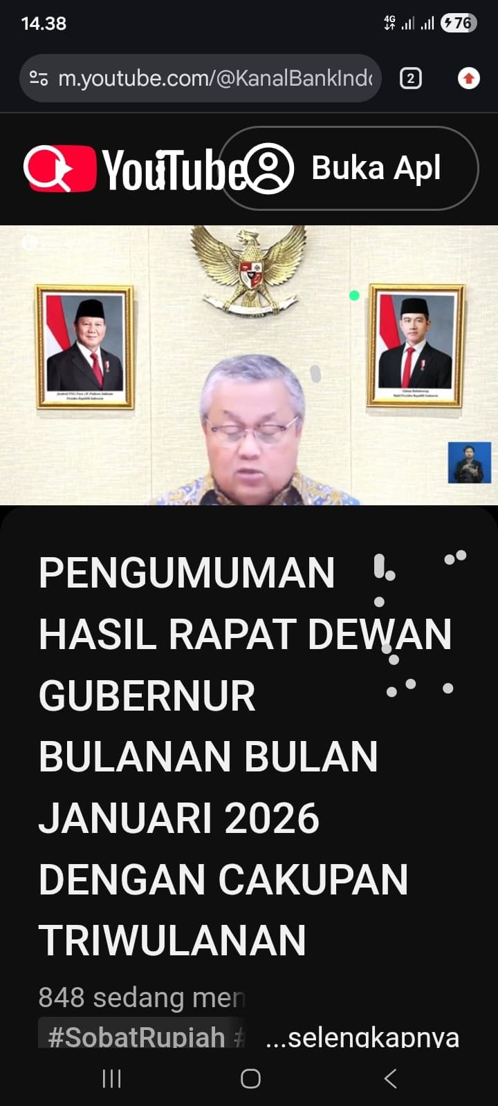 Pengumuman Hasil Rapat Dewan Gubernur Bulanan Tahun 2026, disampaikan Gubernur Bank Indonesia (BI) Perry Warjiyo membahas ekonomi kedepan.