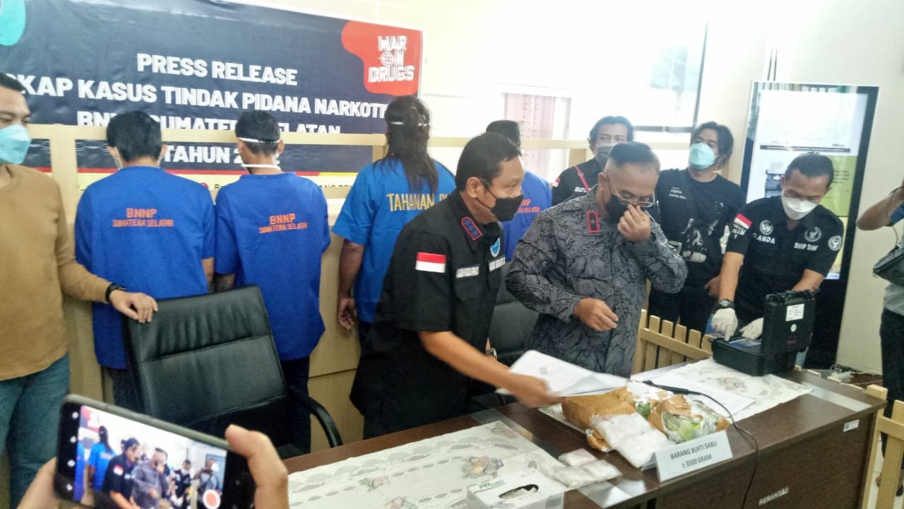 “Tim Barantas BNNP Sumsel mencurigai gerak-gerik dari kedua penumpang mobil Toyota Avanza tersebut dan melakukan pengamatan lebih kepada kedua penumpang mobil tersebut. Selanjutnya Tim melakukan pembuntutan terhadap kendaraan tersebut sampai ke Kota Palembang,” ujarnya, Rabu (23/2/2022).