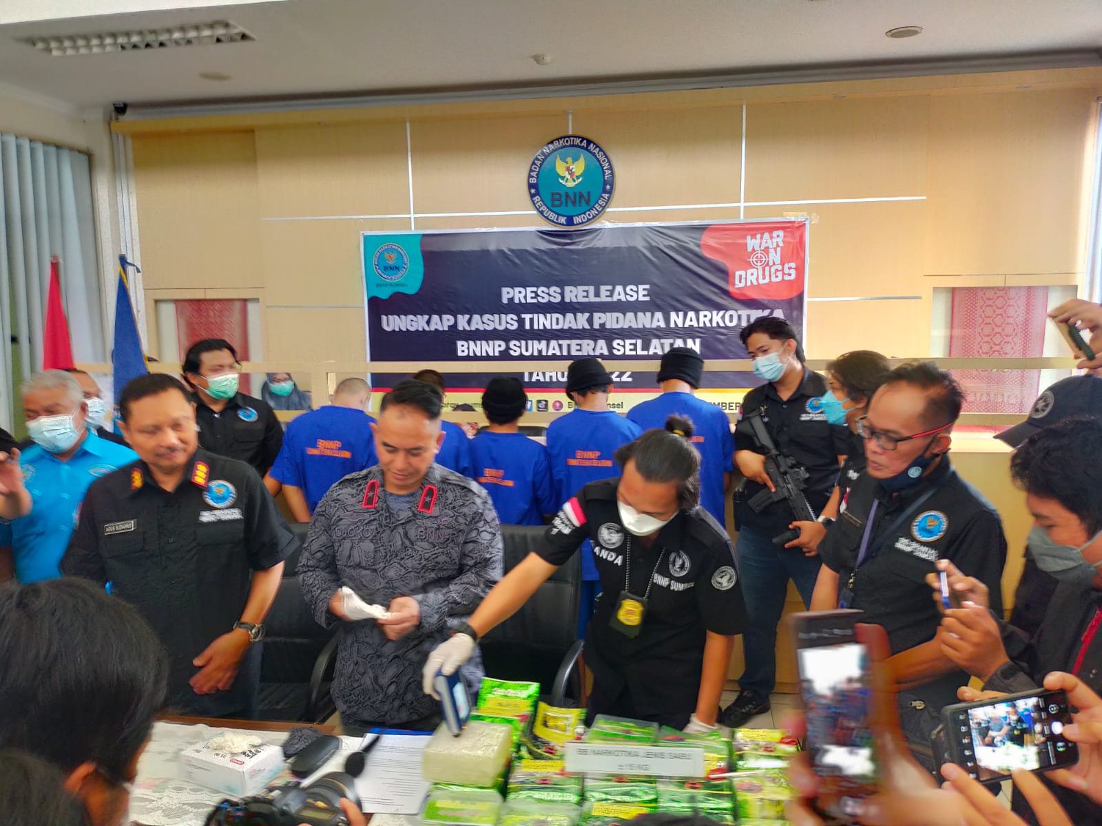 Kepala BNNP Sumsel, Brigjen Pol Djoko Prihadi SH. MH di dampingi oleh Kabid Berantas langsung Kombes Pol Agus Sudarno SH MH mengatakan bahwa BNNP Sumsel akan terus memberantas peredaran Narkoba dan ini adalah bukti keseriusannya.