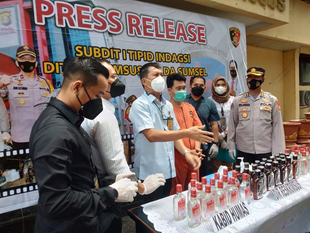 Ditreskrimsus Polda Sumsel berhasil Ungkap Pembuat minuman beralkohol Palsu