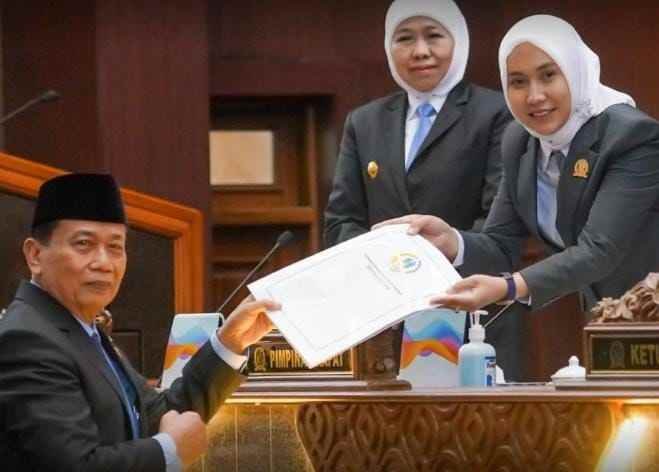 SURABAYA, Darahjuang.online – Khofifah Indar Parawansa Gubernur Jawa Timur bersama DPRD Jatim mengesahkan dua Peraturan Daerah (Perda) Strategis tentang Pelindungan dan Pemberdayaan Pembudi Daya Ikan dan Petambak Garam serta tentang Penanggulangan Bencana.