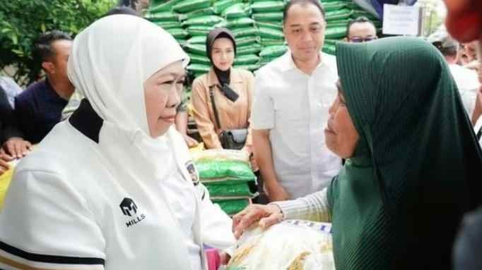 Gubernur Jatim Khofifah Indar Parawansa menegaskan komitmen Pemprov Jatim menggelar pasar murah. Ia ingin sembako murah bisa diakses seluruh warga termasuk di wilayah perbatasan.