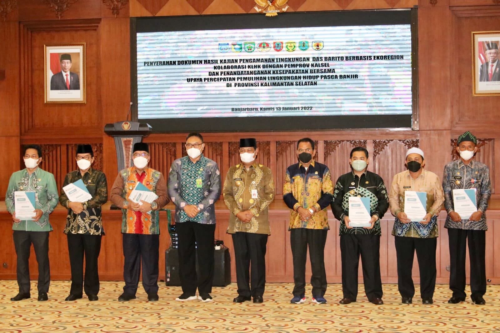 Hal tersebut dikatakannya pada kegiatan penyerahan dokumen hasil kajian pengamanan lingkungan Daerah Aliran Sungai (DAS) Barito Berbasis Ekoregion Kolaborasi Kementerian Lingkungan Hidup dan Kehutanan (KLHK) dengan Pemprov Kalsel dan Penandatanganan Kesepakatan Bersama Upaya Percepatan Pemulihan Lingkungan Hidup Pasca Banjir di Kalsel oleh DLH Provinsi Kalsel di Gedung Idham Chalid Banjarbaru, Kamis (13/01/2022) pagi.