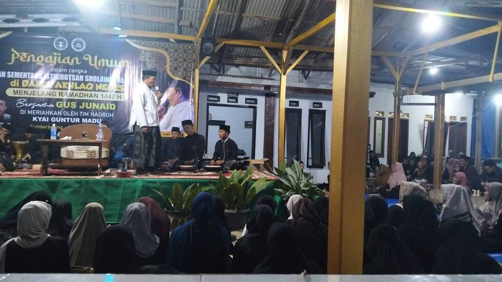 Dalam tausiyahnya Gus Junaid dari Malang pentingnya menjaga sholat, mengajak-ajak sedekah dan mempersiapkan diri untuk mendatangi bulan suci Ramadhan 1447 H, Pengajian Umum juga dihibur oleh group Sholawatan Kyai Guntur Madu.