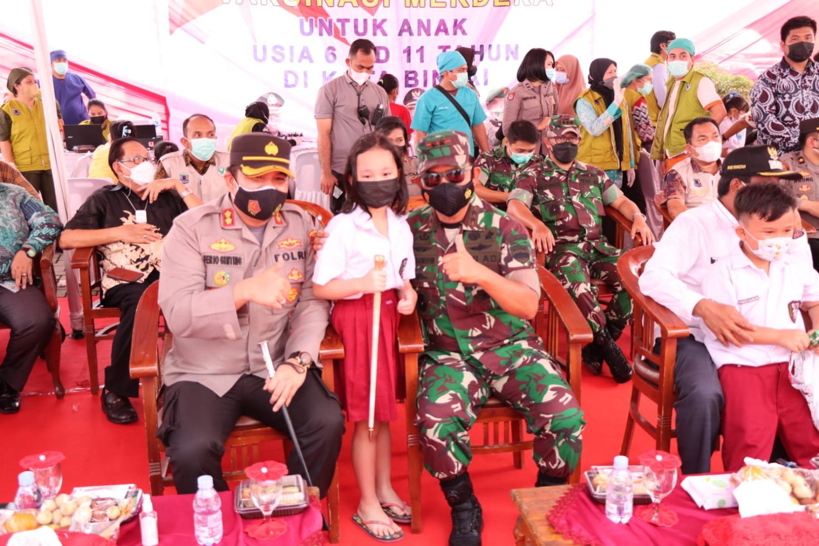 Forkopimda Binjai dan mengharapkan agar terus mendukung kegiatan vaksinasi bagi pelajar usia 6-11 tahun ini, karena anak – anak merupakan aset negara sebagai generasi penerus bangsa.