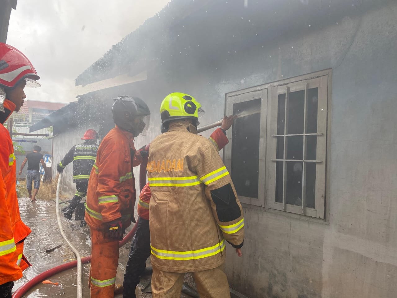 “Petugas Damkar mendapatkan informasi kebakaran, disampaikan oleh pelapor melalui Whatsapp Group Humas Damkar 113. Bahwa terjadi kebakaran pada bangunan di Jalan H Imran,“ kata Supriansyah.