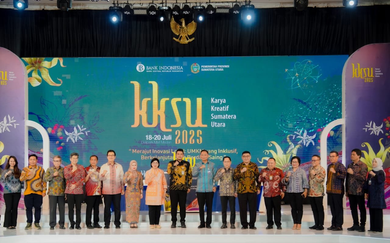 Medan, Darahjuang.online – Kepala Perwakilan Bank Indonesia (KPw BI) Provinsi Sumatera Utara. Rudi Brando Hutabarat buka Karya Kreatif Sumatera Utara (KKSU) Tahun 2025 hari Jum’at (18/07/2025) bertempat di Tiara Comvention Center.