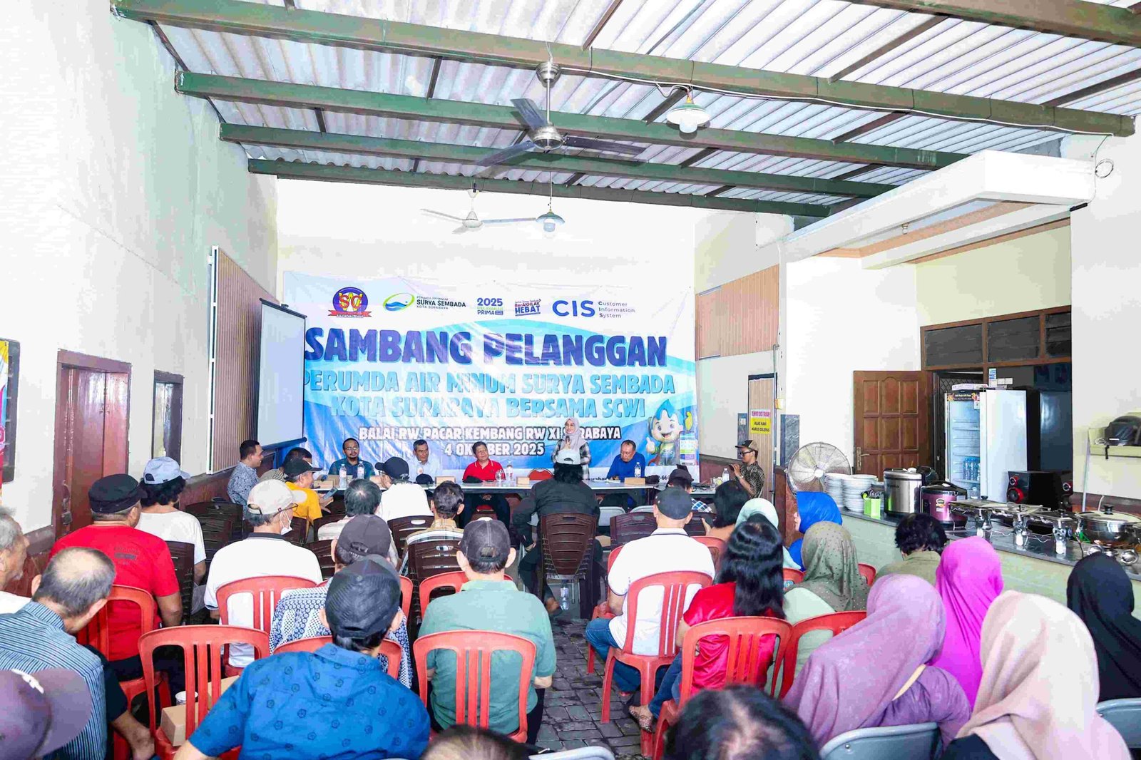 SURABAYA, Darahjuang.online — Perumda Air Minum Surya Sembada Kota Surabaya melaksanakan kegiatan Sambang Pelanggan yang berlangsung di Balai RW 11 Pacar Kembang 4 Oktober 2025. Kegiatan Sambang Pelanggan merupakan forum temu yang bertujuan mempererat komunikasi antara Perumda Surya Sembada dengan masyarakat. Peserta yang hadir meliputi ketua RW 11, RT, tokoh masyarakat dan perwakilan warga. Dengan begitu, suara warga Pacar Kembang diharapkan dapat terwakili sekaligus memperkuat sinergi dalam menjaga kualitas pelayanan.