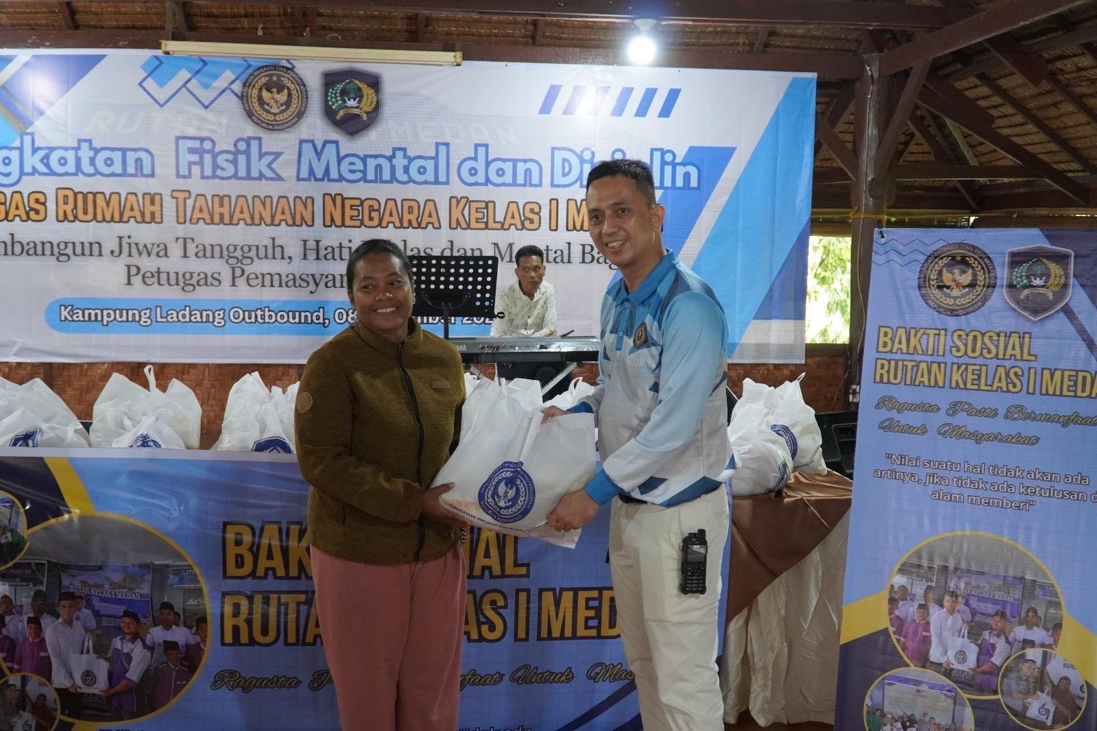 Medan, Darahjuang.online – Pegawai Rutan Kelas I Medan melaksanakan kegiatan Fisik Mental dan Disiplin (FMD) yang berlangsung di Kampung Ladang Outbond, Sabtu (8/11/2025). Kegiatan ini tidak hanya menjadi wadah penguatan motivasi, kekompakan, serta pengembangan karakter pegawai, tetapi juga dirangkaikan dengan aksi kepedulian sosial berupa pembagian 50 paket bantuan sosial kepada masyarakat sekitar Kampung Ladang, masyarakat Dusun II Desa Sembahe Baru.