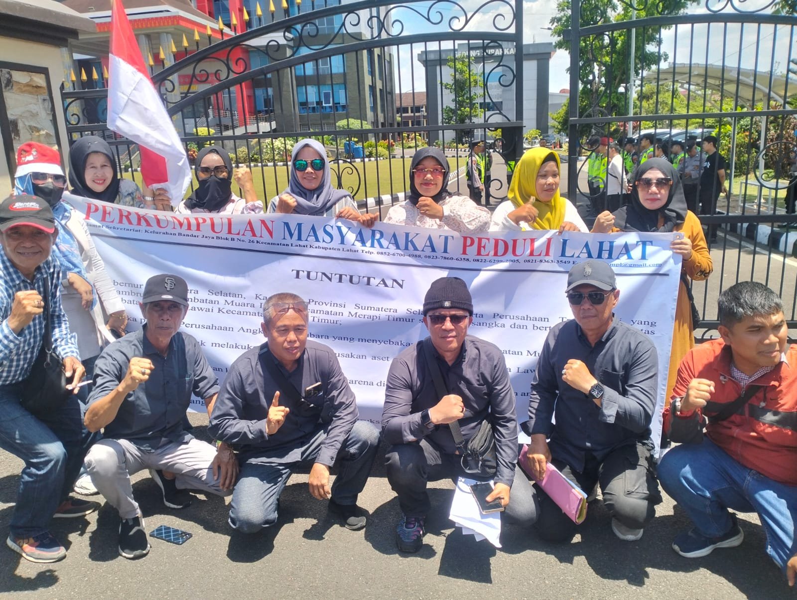 Palembang, Darahjuang.online – Puluhan massa yang tergabung dalam Perkumpulan Masyarakat Peduli Lahat (PMPL) menggelar aksi demonstrasi di halaman Mapolda Sumatera Selatan, Senin (27/10), menuntut penegakan hukum atas kasus ambruknya Jembatan Muara Lawai, Kecamatan Merapi Timur, Kabupaten Lahat.