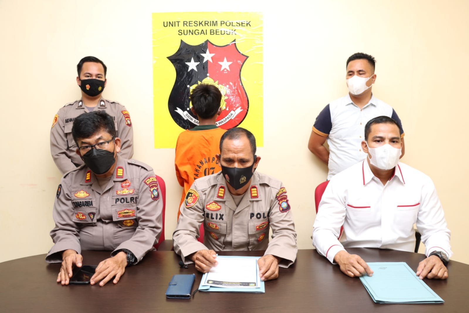 BATAM, Darah Juang Online – Kapolsek Sei Beduk AKP Felix Mauk, SH yang di dampingi oleh Kasi Humas Polresta Barelang AKP Tigor Sidabariba, SH, Kanit Reskrim Polsek Sei Beduk IPTU Doddy Basyir, SH, MH menggelar Konferensi Pers atas Tindak Pidana Pencurian Motor (Curanmor). Senin (24/01/2022)