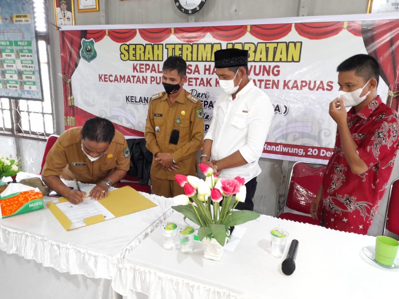 Dengan berakhirnya masa jabatan kepala desa Handiwung, Bapak Kelana putera, yang terhitung dari tanggal 30 November 2021 lalu, hari ini tanggal 20/12/2021. baru bisa dilakukan serah terimakan jabatan, kepada Bapak M.Rusli Spd.I (Pejabat Kepala Desa yang Baru) yang dikarenakan kesibukan membuat laporan pertangung jawaban dan masih adanya jadwal pelayanan masyarakat terkait penanganan Covid 19 Yaitu Vaksinasi.
