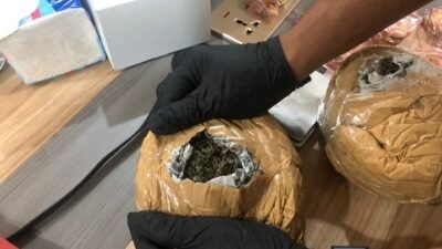 Pada saat proses pelacakan, Anjing K-9 tersebut menunjukkan respons terhadap salah satu paket yang berasal dari Aceh. Setelah dilakukan pemeriksaan mendalam ditemukan daun kering berwarna hijau kecoklatan yang disembunyikan di dalam 2 (dua) kaleng biskuit. Selain mengamankan 2 (dua) kaleng biskuit tersebut petugas juga mengamankan beberapa bungkus