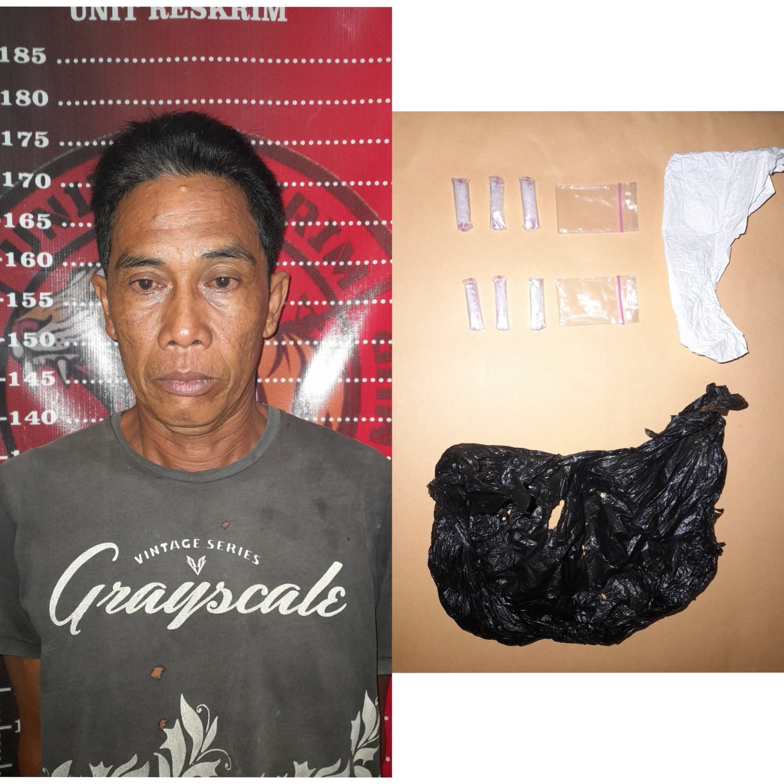Adapun tersangka pengedar narkoba jenis sabu-sabu bernama, Teisar 50 Tahun