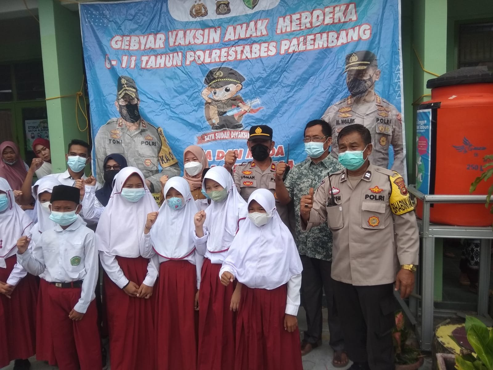 Palembang, Darah Juang Online — Giat vaksinasi anak masih berlanjut di wilayah Kota Palembang. Seperti hari ini (Selasa tanggal 25 Januari 2022, Red) vaksinasi dari jajaran Polsek Seberang Ulu 1 sasar MI Al’Hidayah Lorong Al Hidayah RT. 37, Kelurahan Silaberanti, Kecamatan Jakabaring Palembang.