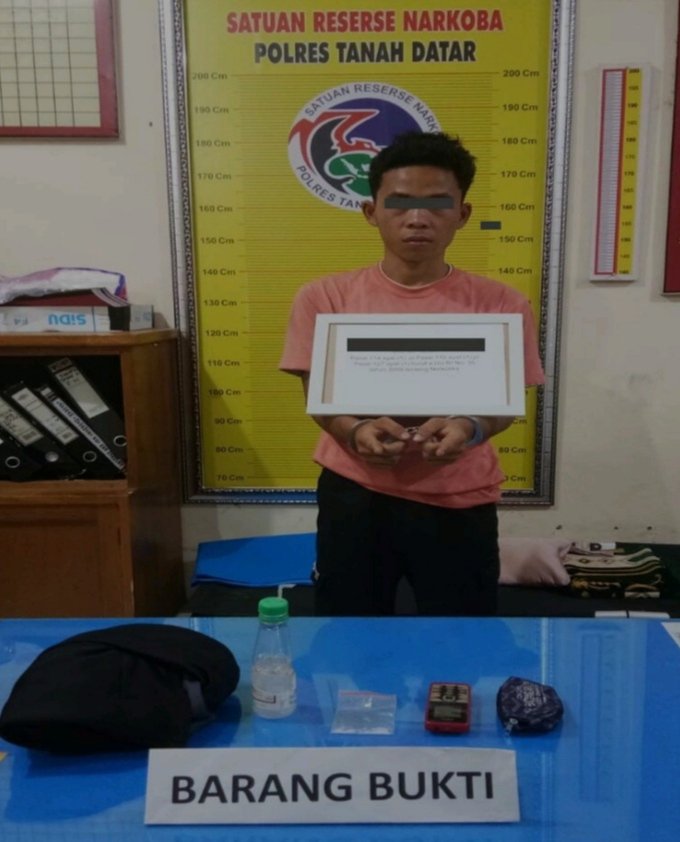 Batusangkar, Darah Juang Online — DP (23) tahun pekerjaan swasta berhasil ditangkap oleh Satuan Trantula Polres Tanah Datar terduga penyalahgunaan Narkotika jenis Shabu, di Jorong Tigo Batua Nagari Sungai Tarab Kecamatan Sungai Tarab Kabupaten Tanah Datar Pada Sabtu (26/03) pukul 14:00 Wib.
